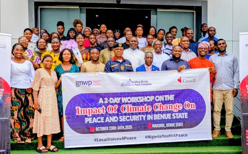 The programme held in Makurdi is implemented by Building Blocks for Peace Foundation Benue State in collaboration with the Global Network of Women Peacebuilders and funding support from Global Affairs Canada, was aimed at building a deeper understanding of the climate-security nexus and to create a platform where diverse actors can jointly design strategies to strengthen resilience.